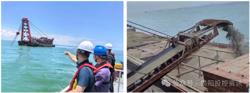 高文阁一行到惠来靖海湾东南侧海域海砂项目现场检查项目进展情况和安全生产运营情况,听取投控矿产资源开发有限公司负责同志工作汇报。