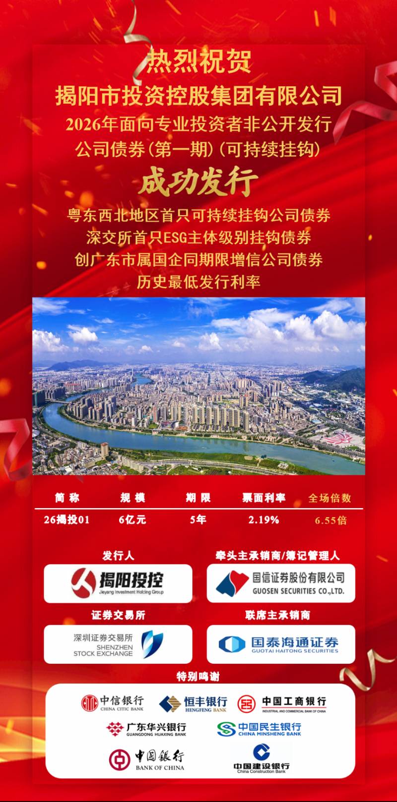 揭阳市投资控股集团有限公司2026年第一期公司债券发行成功